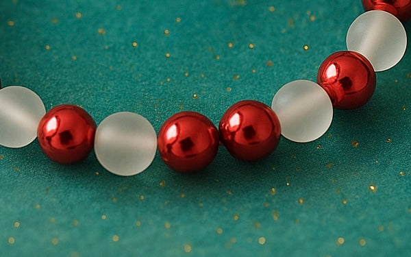 This handmade bracelet features soft blush glass beads paired with warm rose-toned metallic accents, creating a gentle balance of calm and confidence. The frosted finish catches the light quietly—never loud, always intentional.